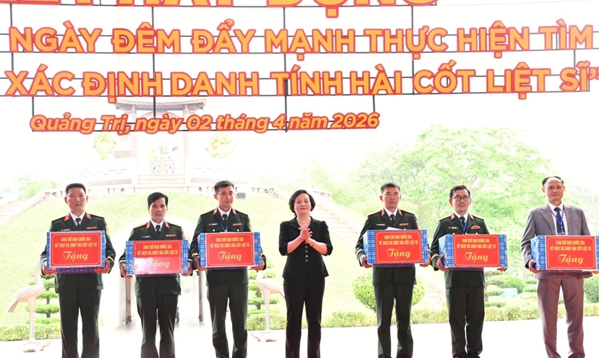 Dịp này, Phó Thủ tướng Phạm Thị Thanh Trà đã trao quà tặng: Viện Pháp y Quân đội, Viện Sinh học (Viện Hàn lâm Khoa học và Công nghệ Việt Nam), các Đội tìm kiếm, quy tập hài cốt liệt sĩ và các gia đình chính sách.
