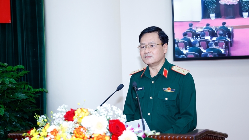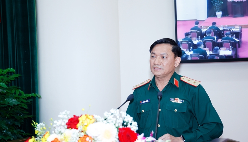 Đồng chí Trung tướng Lê Văn Hướng, Phó Tổng Tham mưu trưởng QĐND Việt Nam phát biểu tại Hội nghị