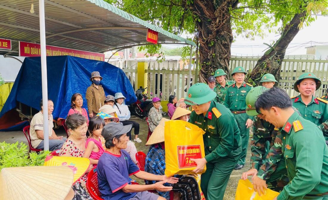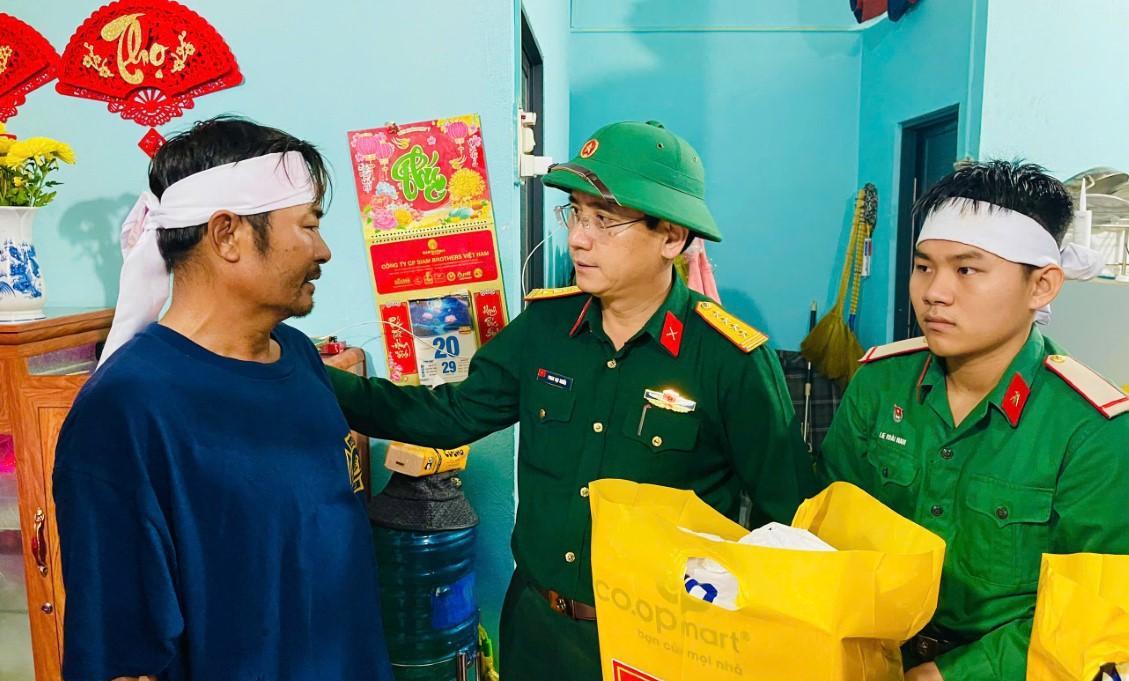 Đồng chí Đại tá Phan Đại Nghĩa, Phó Tư lệnh kiêm Tham mưu trưởng Quân khu 5 tặng quà, động viên thân nhân gia đình chiến sĩ Lê Hoài Nam, Đội Bảo vệ Kho K55 (Cục Hậu cần - Kỹ thuật Quân khu 5)