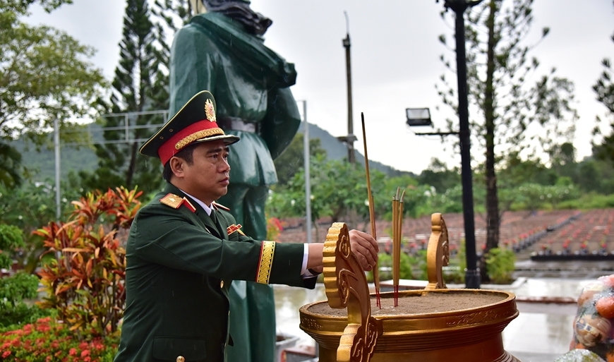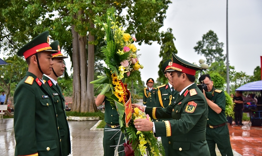 Đồng chí Thiếu tướng Cao Xuân Thắng, Phó Cục trưởng Cục Chính sách - Xã hội kiêm Giám đốc Bảo hiểm xã hội Quân đội, Phó Chánh Văn phòng Ban Chỉ đạo quốc gia 515 dâng hoa, dâng hương kính viếng các anh hùng liệt sĩ