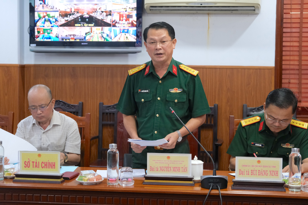 Tham dự Hội nghị có đồng chí Đại tá Bùi Đăng Ninh, Chính ủy Bộ CHQS tỉnh; Đại tá Nguyễn Minh Tấn, Phó Chính ủy Bộ CHQS tỉnh, Phó Trưởng Ban Chỉ đạo 515 tỉnh Tây Ninh, cùng lãnh đạo các sở, ngành liên quan.