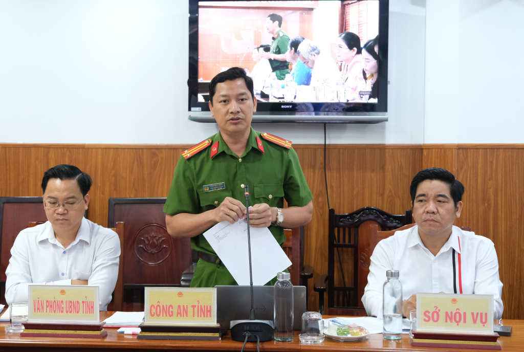 Đồng chí Đại tá Nguyễn Minh Tấn, Phó Chính ủy Bộ CHQS tỉnh, Phó Trưởng Ban Chỉ đạo 515 tỉnh Tây Ninh phát biểu tại Hội nghị