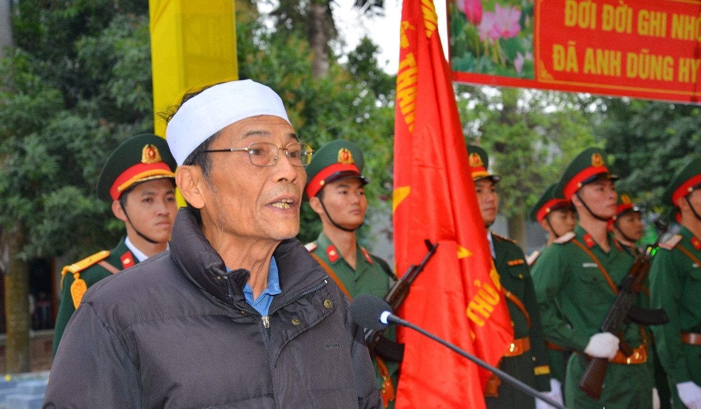 Ông Hà Minh Khương, đại diện gia đình liệt sĩ Hà Văn Ân phát biểu tại Lễ truy điệu và an táng