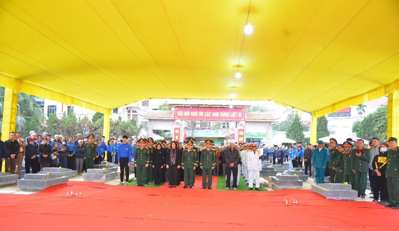 Các đại biểu di chuyển hài cốt liệt sĩ về nơi an táng