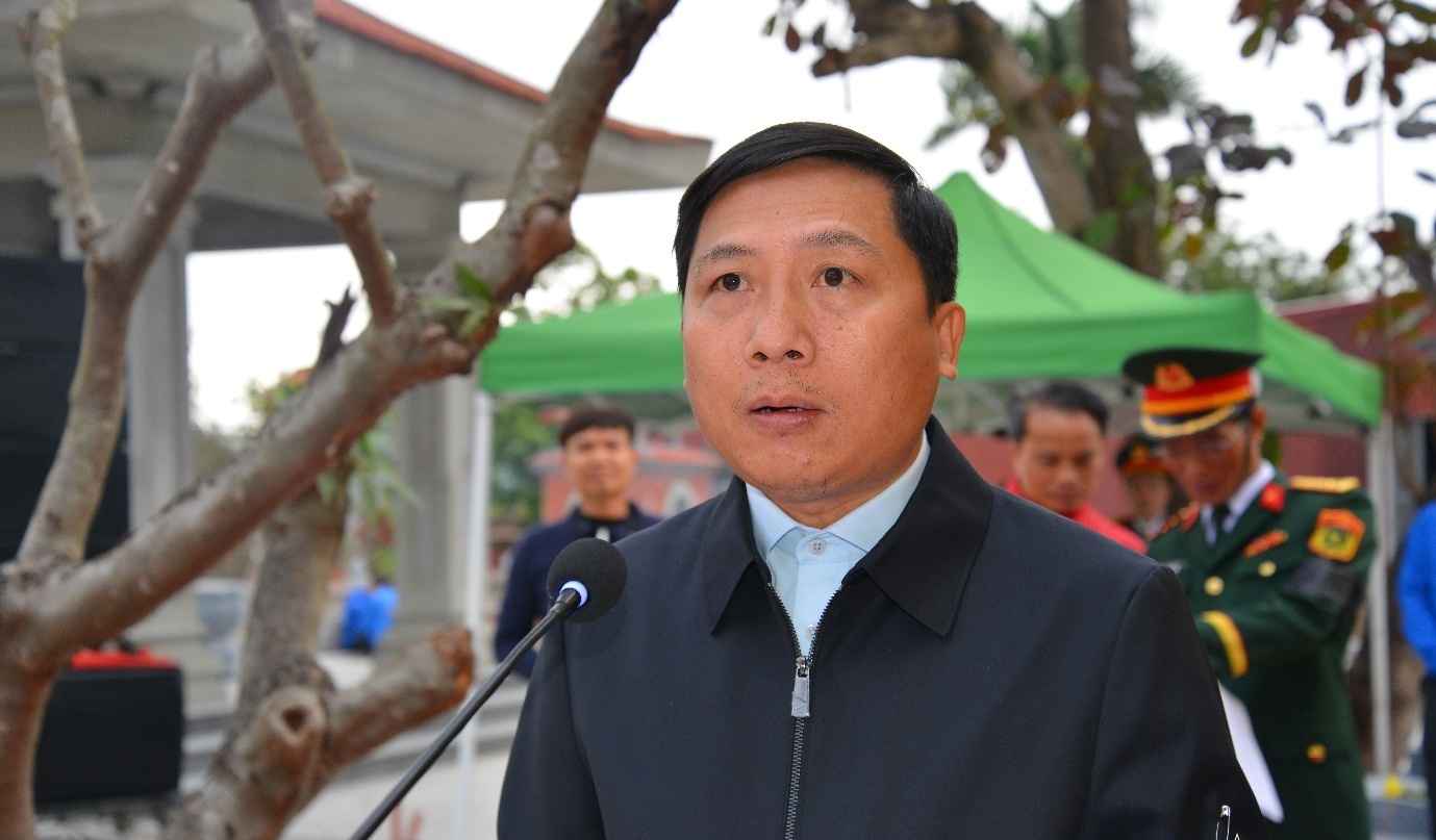 Đồng chí Nguyễn Thanh Liêm, Bí thư Đảng ủy, Chủ tịch HĐND xã Quang Minh đọc điếu văn tại Lễ truy điệu và an táng hài cốt liệt sĩ