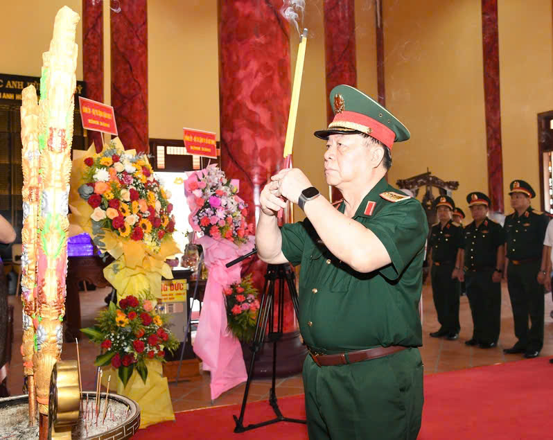 Đồng chí Đại tướng Nguyễn Trọng Nghĩa, Ủy viên Bộ Chính trị, Bí thư Trung ương Đảng, Ủy viên Thường vụ Quân ủy Trung ương, Chủ nhiệm Tổng cục Chính trị QĐND Việt Nam dâng hương tưởng nhớ các anh hùng liệt sĩ Rừng Sác