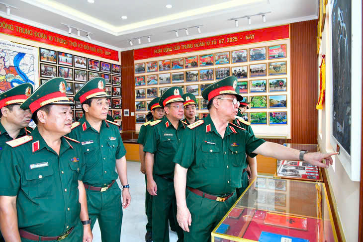 Đồng chí Đại tướng Nguyễn Trọng Nghĩa, Ủy viên Bộ Chính trị, Bí thư Trung ương Đảng, Ủy viên Thường vụ Quân ủy Trung ương, Chủ nhiệm Tổng cục Chính trị QĐND Việt Nam tham quan các hình ảnh tư liệu về chiến sĩ Đặc công Rừng Sác