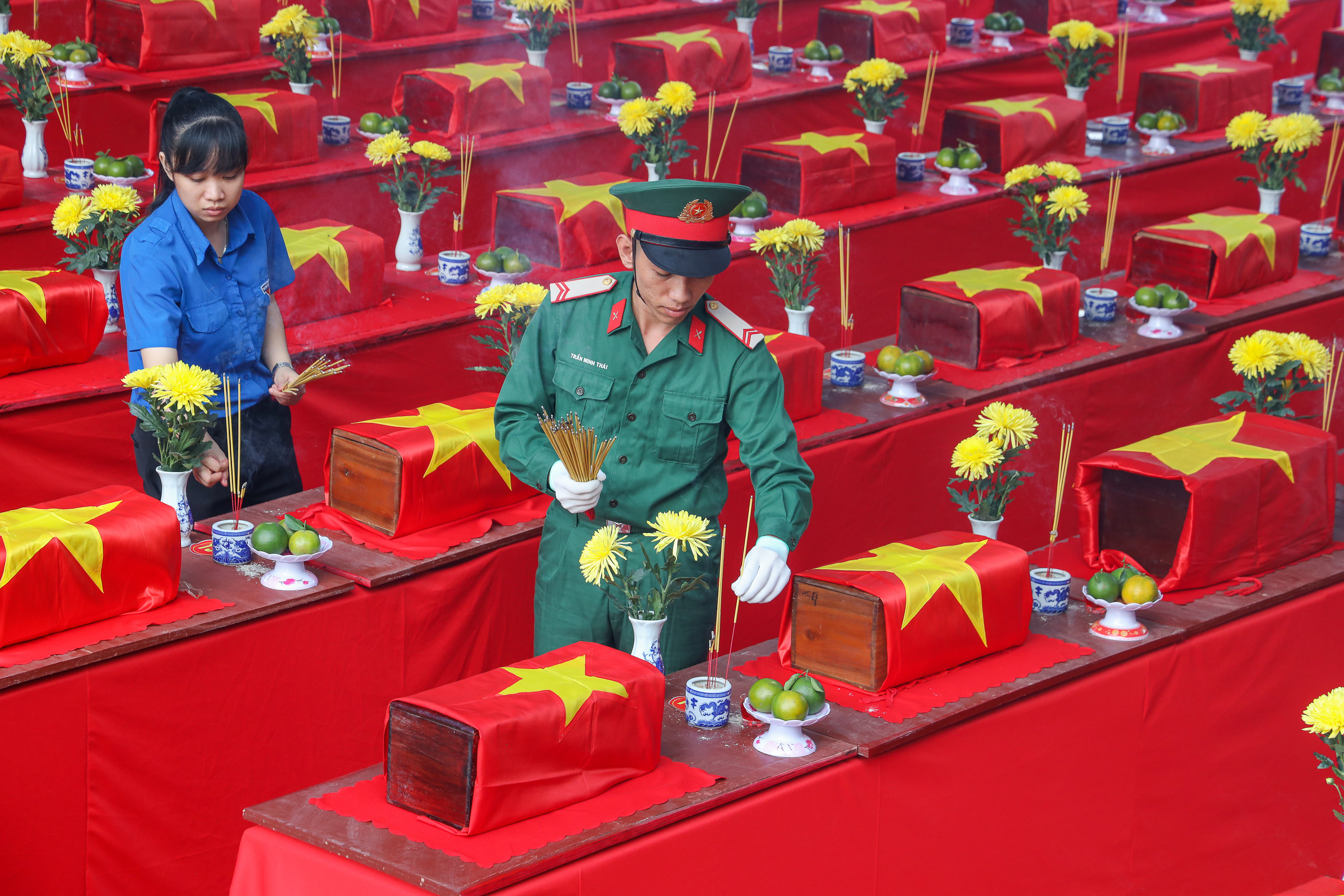 Chiến sĩ và đoàn viên tỉnh Tây Ninh dâng hương viếng các anh hùng liệt sĩ do Đội K71 tìm kiếm, quy tập hài cốt liệt sĩ