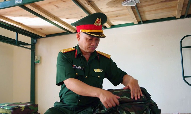 Đồng chí Trung tá Bùi Đình Quận, Đội tìm kiếm, quy tập hài cốt liệt sĩ/Bộ CHQS tỉnh Hà Tĩnh đang chuẩn bị các vật dụng thiết yếu sẵn sàng lên đường thực hiện nhiệm vụ