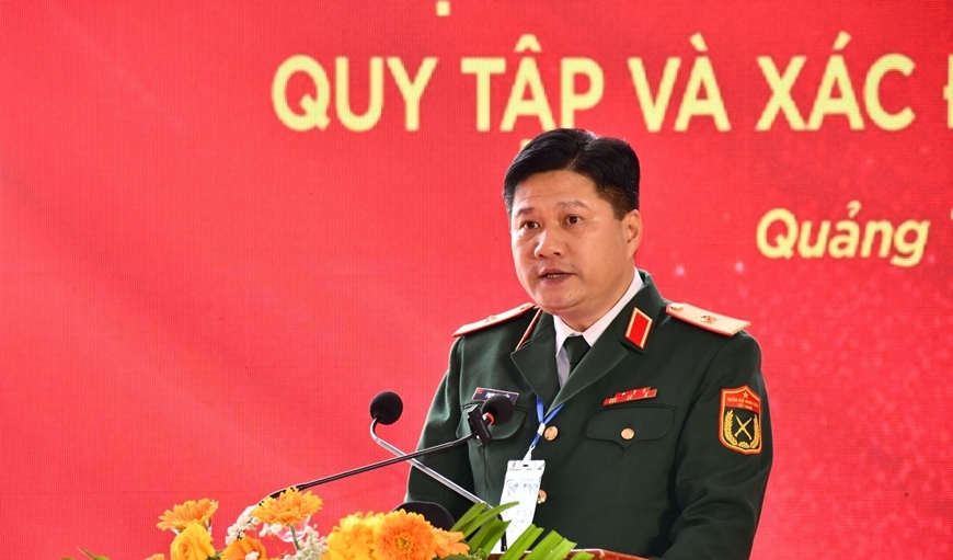 Đồng chí Thiếu tướng Phạm Anh Tuấn, Chủ nhiệm Chính trị Quân khu 7, Phó Trưởng ban Thường trực Ban Chỉ đạo 515 Quân khu 7 phát biểu hứa hẹn quyết tâm tại Lễ Phát động “Chiến dịch 500 ngày đêm đẩy mạnh tìm kiếm, quy tập và xác định danh tính hài cốt liệt sĩ”