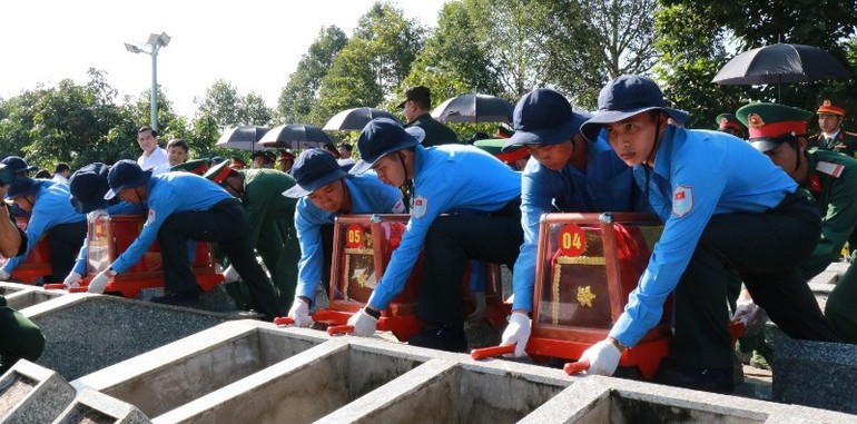 Trong Lễ truy điệu hài cốt liệt sĩ quân tình nguyện và chuyên gia Việt Nam hy sinh qua các thời kỳ chiến tranh ở Campuchia được được tỉnh Đồng Tháp tổ chức vào tháng 7/2025 tại Nghĩa trang liệt sĩ Tam Nông, đồng chí Huỳnh Minh Tuấn, Phó Chủ tịch UBND tỉnh, Trưởng Ban Chỉ đạo 515 tỉnh Đồng Tháp cho biết: Do điều kiện chiến tranh ác liệt kéo dài, 41 hài cốt liệt sĩ đưa về Tổ quốc đợt này chưa xác định được tên, tuổi, quê quán; song, dù quê quán ở đâu, xin linh hồn các liệt sĩ hãy xem quê hương Đồng Tháp là đất lành để an nghỉ. Đảng bộ và nhân dân Đồng Tháp xin thay mặt Nhân dân cả nước, nguyện chăm sóc, giữ gìn phần mộ của các liệt sĩ, Nhân dân tỉnh Đồng Tháp quyết biến đau thương thành hành động, quyết tâm thực hiện hoài bão của các liệt sĩ lúc sinh thời, tiếp tục ra sức bảo vệ và xây dựng đất nước ngày càng giàu đẹp; đồng thời, tiếp tục giữ gìn và vun đắp tình đoàn kết hữu nghị của hai dân tộc Việt Nam - Campuchia. Đó là lễ vật cao quý kính dâng, bày tỏ lòng tri ân đến các anh hùng liệt sĩ.