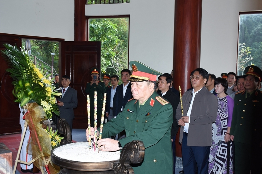 Điểm đến đầu tiên của Đoàn là Khu di tích Quốc gia đặc biệt rừng Trần Hưng Đạo. Đây là địa danh lịch sử ghi dấu sự ra đời của Đội Việt Nam Tuyên truyền giải phóng quân, tiền thân của Quân đội nhân dân Việt Nam anh hùng. Trong không khí trang nghiêm, thành kính, Đoàn công tác bày tỏ lòng biết ơn vô hạn đối với đồng chí Đại tướng Võ Nguyên Giáp, người chiến sĩ cách mạng kiên trung, người học trò xuất sắc, gần gũi của Chủ tịch Hồ Chí Minh; một tài năng quân sự xuất chúng, có nhiều công lao to lớn và cống hiến đặc biệt xuất sắc đối với sự nghiệp cách mạng của Đảng, dân tộc ta.