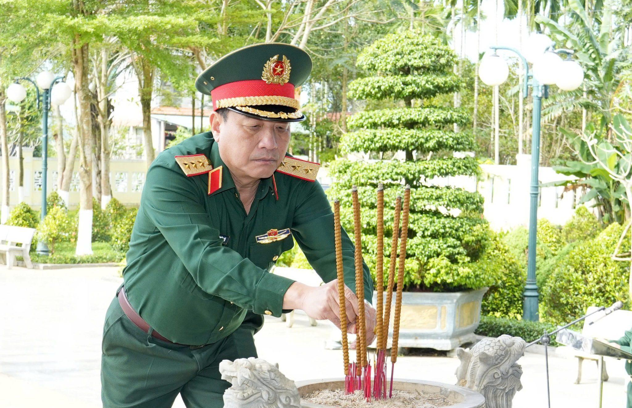 Đồng chí Thượng tướng Trương Thiên Tô và các đại biểu tham gia dâng hương kính viếng các anh hùng liệt sĩ