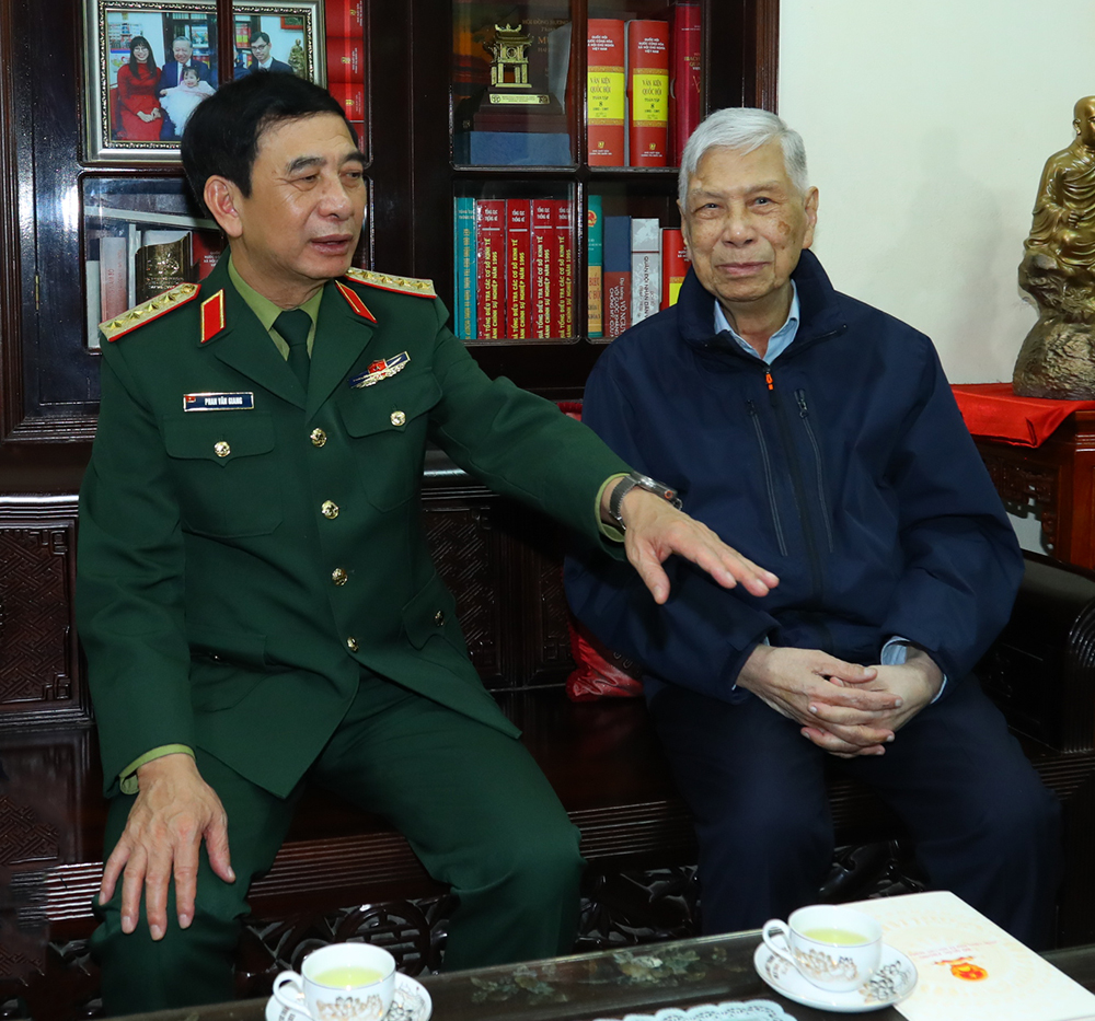 * Chiều cùng ngày, đồng chí Đại tướng Phan Văn Giang và Đoàn công tác đã đến thăm, tặng quà đồng chí Đại tướng Phạm Văn Trà, nguyên Bộ trưởng Bộ Quốc phòng; Đại tướng Ngô Xuân Lịch, nguyên Bộ trưởng Bộ Quốc phòng; Trung tướng, Anh hùng LLVT nhân dân Đặng Quân Thụy, nguyên Phó Chủ tịch Quốc hội.