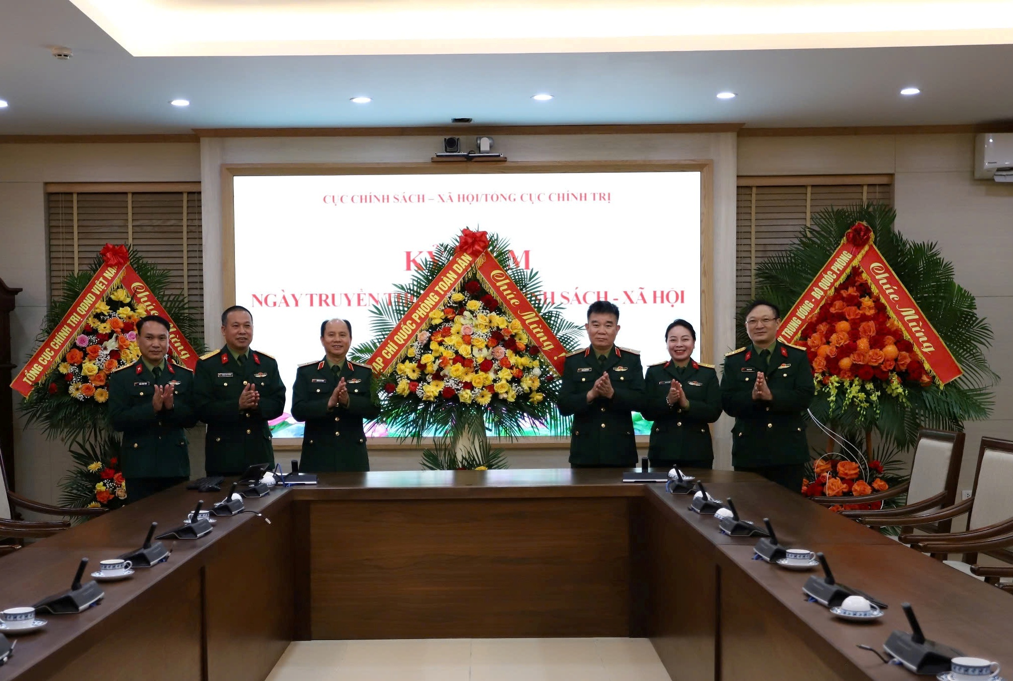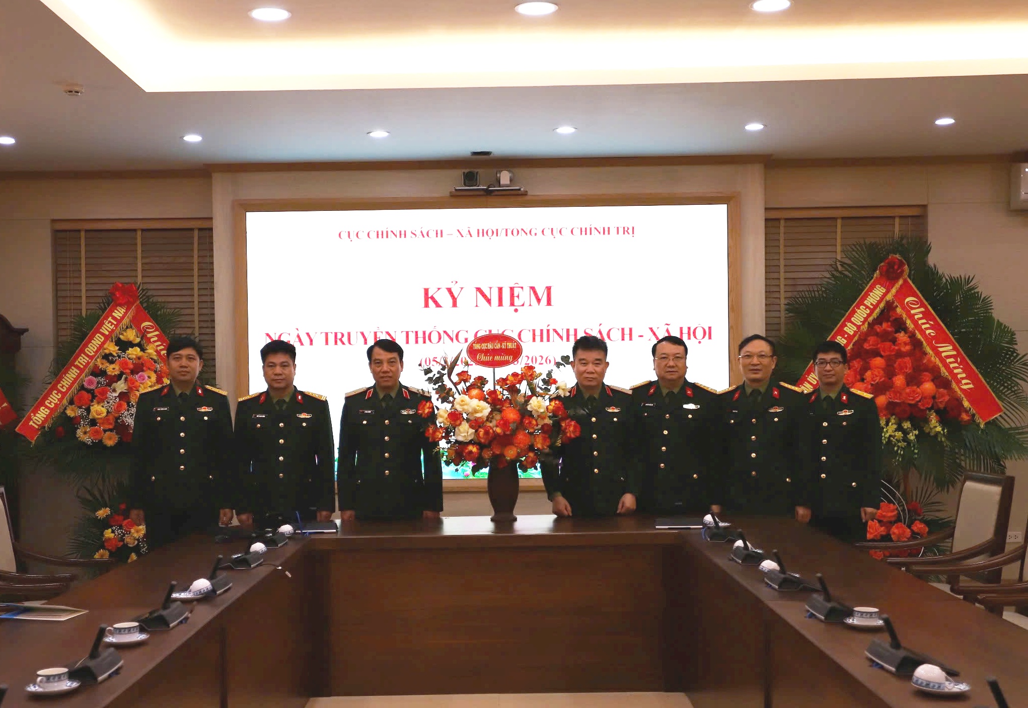 Đoàn đại biểu Tổng cục Hậu cần - Kỹ thuật tặng hoa chúc mừng 01 năm Ngày truyền thống Cục Chính sách - Xã hội/TCCT (05/3/2025 - 05/3/2026)