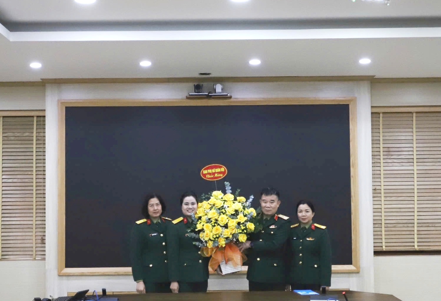 Đoàn đại biểu Ban Phụ nữ Quân đội tặng hoa chúc mừng 01 năm Ngày truyền thống Cục Chính sách - Xã hội/TCCT (05/3/2025 - 05/3/2026)