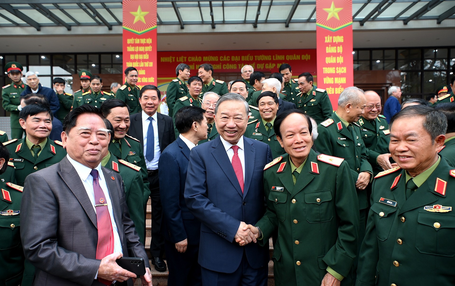 Tại buổi gặp mặt, Tổng Bí thư Tô Lâm bày tỏ xúc động được gặp mặt các đồng chí đại biểu tướng lĩnh, sĩ quan cao cấp trong quân đội đã nghỉ hưu, nghỉ công tác; nhấn mạnh, cuộc gặp càng ý nghĩa hơn khi Đại hội đại biểu toàn quốc lần thứ XIV của Đảng vừa thành công rất tốt đẹp.