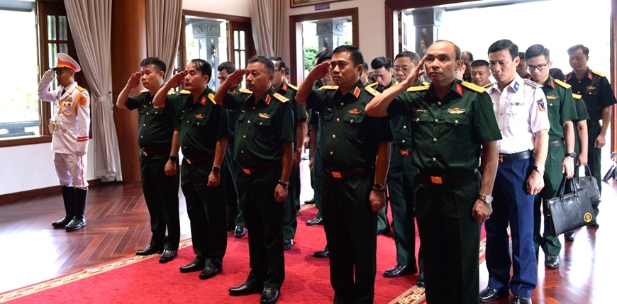 Trước khai mạc Hội nghị tập huấn, đồng chí Thượng tướng Lê Quang Minh và các đại biểu đã dâng hương, dâng hoa tưởng niệm Chủ tịch Hồ Chí Minh, Đại tướng Võ Nguyên Giáp tại Bảo tàng Hồ Chí Minh - Chi nhánh Quân khu 5.