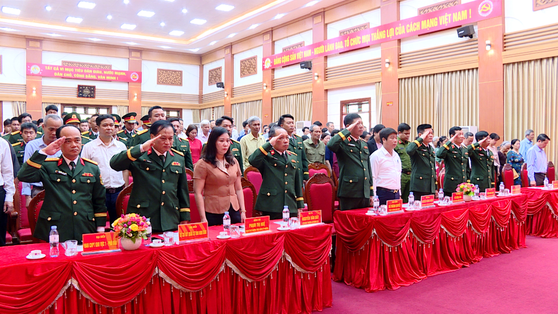 Các đại biểu dành phút mặc niệm tưởng nhớ công lao, cống hiến hy sinh của Anh hùng LLVT nhân dân, liệt sĩ Vũ Văn Bình